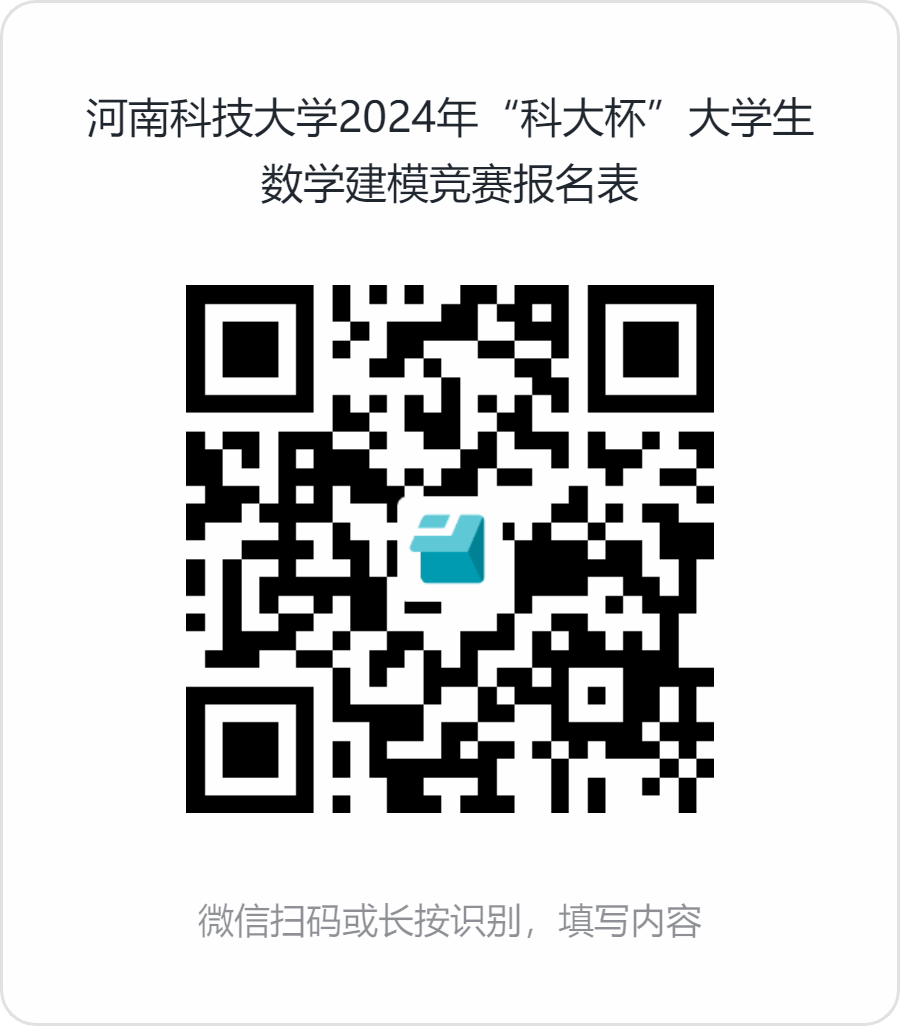 1. 电子报名时间:2024年4月30日~5月14日(周四)20点,报名请队长通过如下二维码扫码填写整个队伍的报名信息(或者PC端登录https://f.wps.cn/g/sUteyTDv),建议在5月15日队伍成型并提交论文后再填写报名信息以免返工,若信息有误,请队长重新登陆修改报名信息。