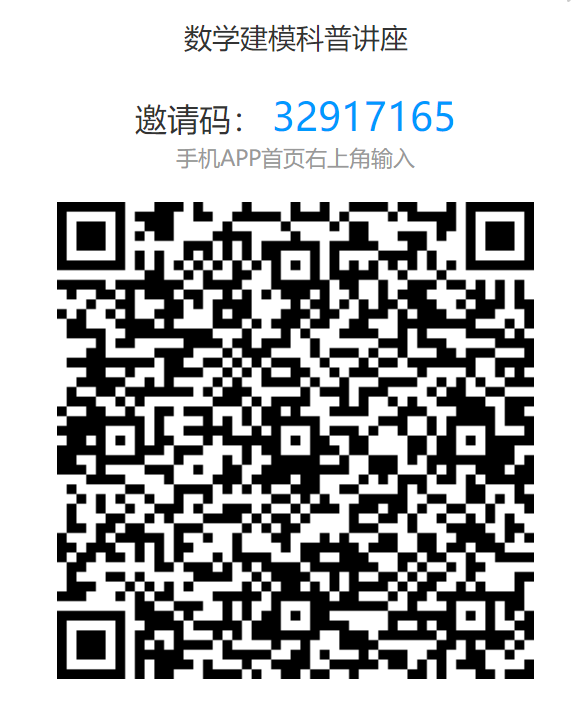 为了在全校进一步普及和强化数学建模素养,激发学生利用数学理论解决应用实践问题,拓展大学生视野,同时为数学建模五一校赛做好普及入门工作,在教务处、研工部/研究生院、学生工作处、校团委的大力支持下,数学与统计学院计划于四月份的每周周末面向在校本科生、研究生开展“漫谈数学建模”系列科普讲座。考虑到疫情防控的需要,讲座时间安排在周末晚上线上进行。讲座计划和学习通培训通知群二维码如下所示: