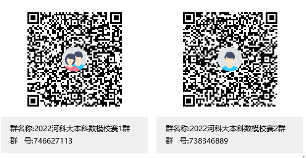 为了满足广大同学的参赛需求,凡是获得校级竞赛奖励的参赛队员、或近两年选修过数学模型课程且考核合格、或往年参加过数学建模国赛的同学,均可参加我校组织的全国大学生数学建模竞赛暑期强化培训,并参加国赛。请参加培训的同学在7月12日前加入QQ一群或QQ二群(两个群会同步,不需要重复加群),方便后续竞赛通知与组织。参赛QQ群二维码如下: