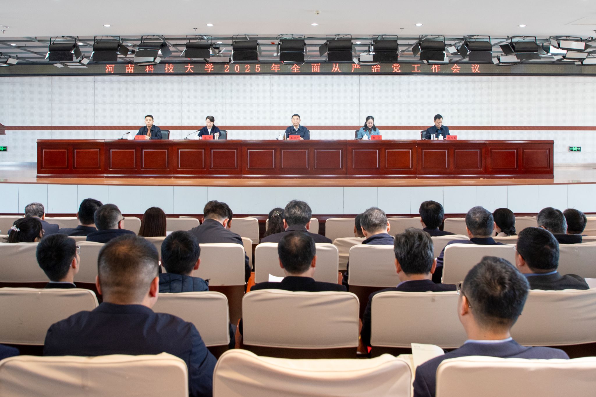 校党委副书记郭相春宣读了学校2025年全面从严治党工作要点,并安排部署相关工作。校纪委书记侯帅传达了习近平总书记在二十届中央纪委四次全会上的重要讲话精神、二十届中央纪委四次全会精神、十一届省纪委五次全会精神和有关要求,安排部署学校2025年党风廉政建设和反腐败工作。
