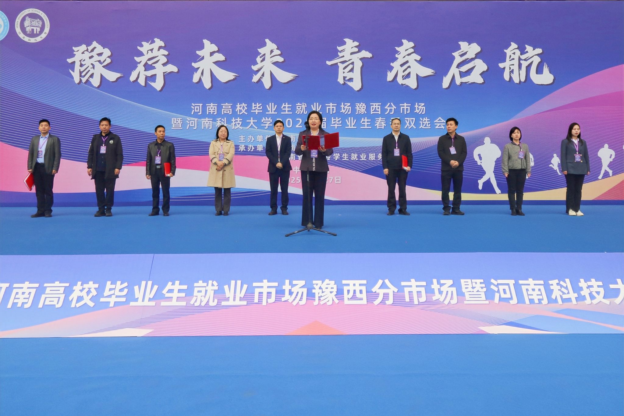 校新闻中心讯 3月27日,由河南省教育厅主办,正规博彩平台、河南省大中专学生就业服务中心承办的河南毕业生就业市场豫西分市场暨正规博彩平台2025届毕业生春季双选会在我校举办,副校长侯小改出席开幕式。