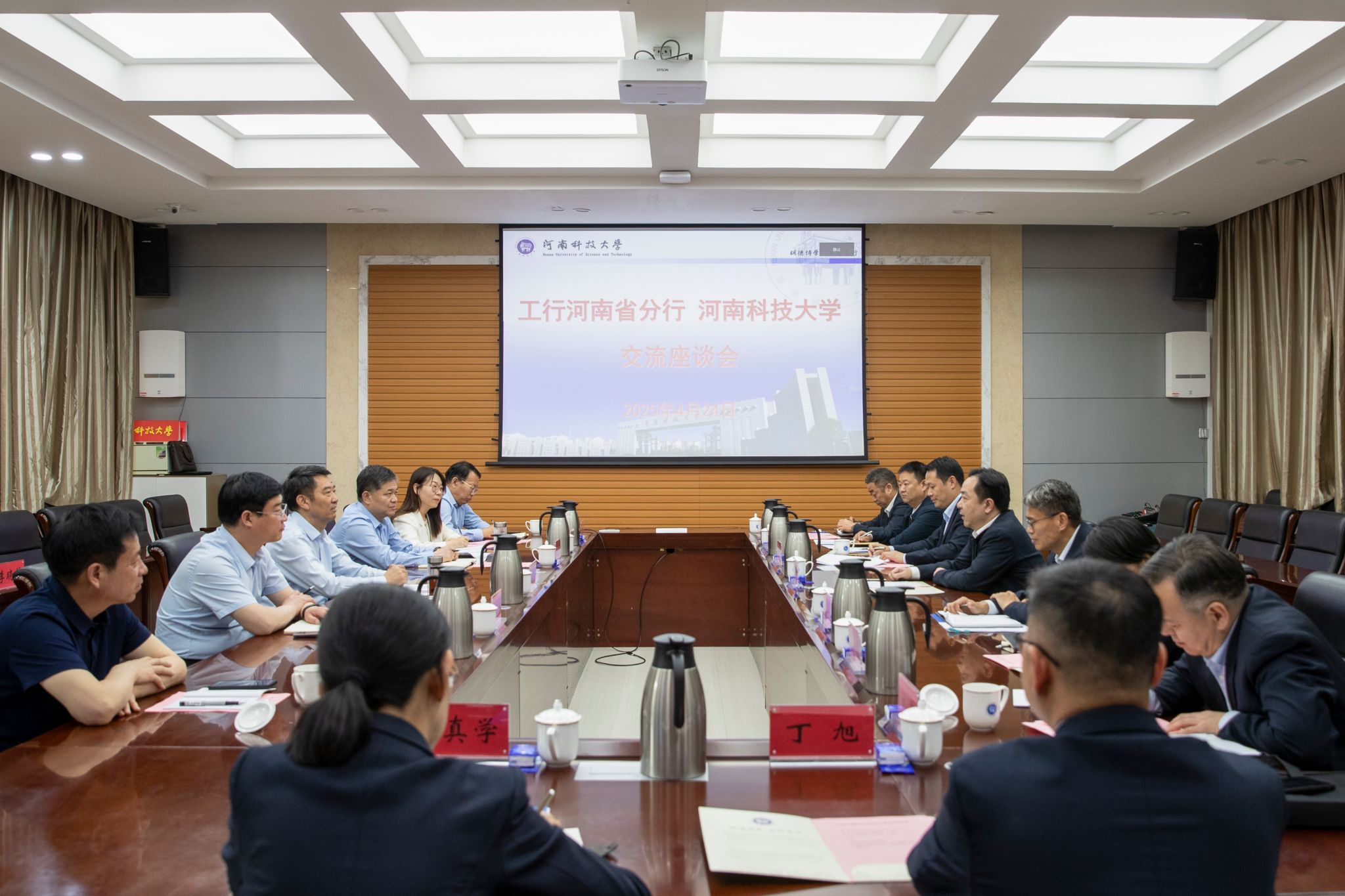 校新闻中心讯 4月24日,工商银行河南省分行书记、行长黄焱一行来校调研,党委书记、校长王洪彬出席座谈会。会议由副校长王学峰主持。