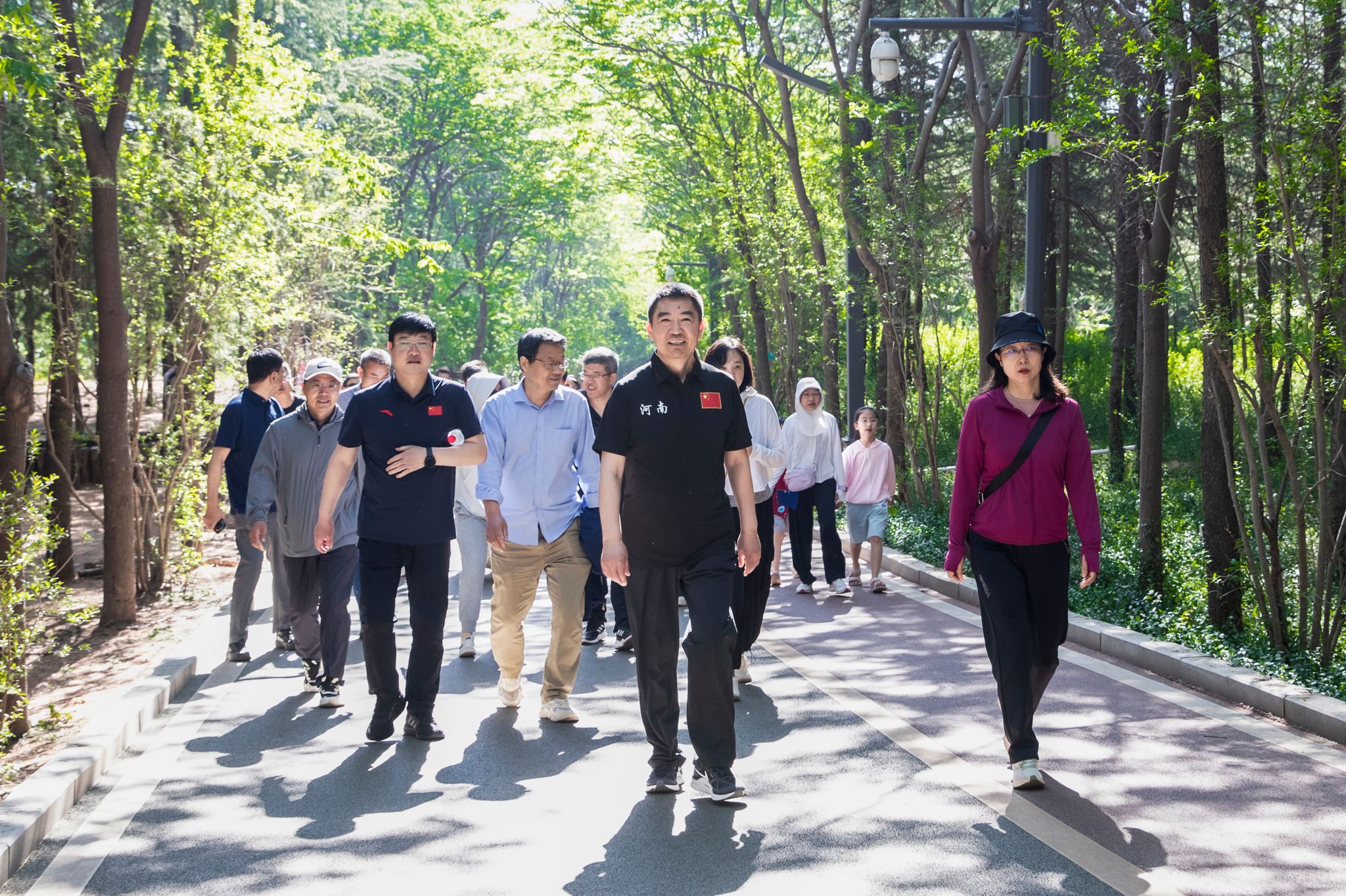 校新闻中心讯 5月11日,学校在周山森林公园组织开展“勠力求发展 攻坚‘双一流’”教职工健步走活动。党委书记、校长王洪彬,党委副书记、工会主席杨霞,以及2000余名教职工参加活动。