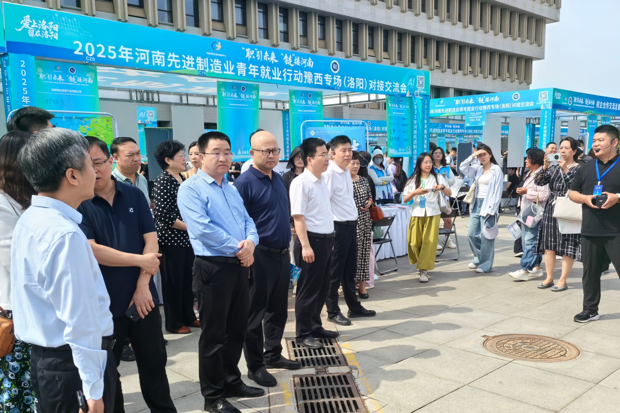 校新闻中心讯 5月15日,2025年河南省先进制造业青年就业行动豫西专场—先进装备产业等集群专项对接活动在我校举办。河南省就业创业服务中心副主任李国晓,洛阳市政府副秘书长毛伟,洛阳市人力资源和社会保障局党组成员、副局长赵胜利,洛阳市人力资源和公共就业服务中心党委书记、主任张超峰,副校长李三强出席活动。
