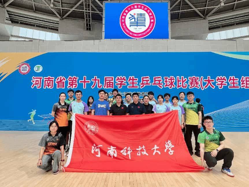 校新闻中心讯 近日,河南省第十九届学生乒乓球比赛(大学生组)火热开赛,来自全省81所高校576名队员参加比赛。我校乒乓球队过关斩将,夺得男子团体、男子双打、混合双打三项冠军(占本次比赛组别金牌数量的近50%),以及女子团体季军和本科甲组男单、女单,本科乙组女子团体和混双4个第五名的好成绩。其中甲组队员张正凯成为本组别的大满贯得主,薛钦海、李润东荣获“优秀运动员”称号,杨洪被评为“优秀教练员”,我校获“体育道德风尚奖”。