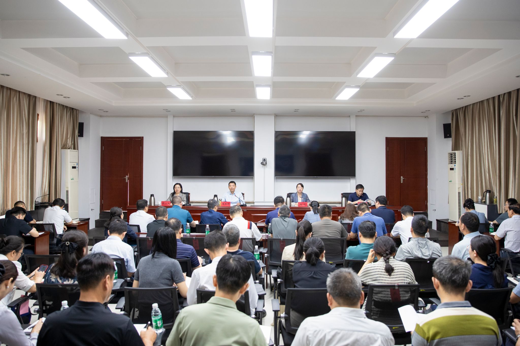 校新闻中心讯 6月4日,我校召开2025届毕业生文明离校暨安全稳定工作部署会。党委书记、校长王洪彬,副校长侯小改、王学峰出席会议。会议由党委副书记海然主持。