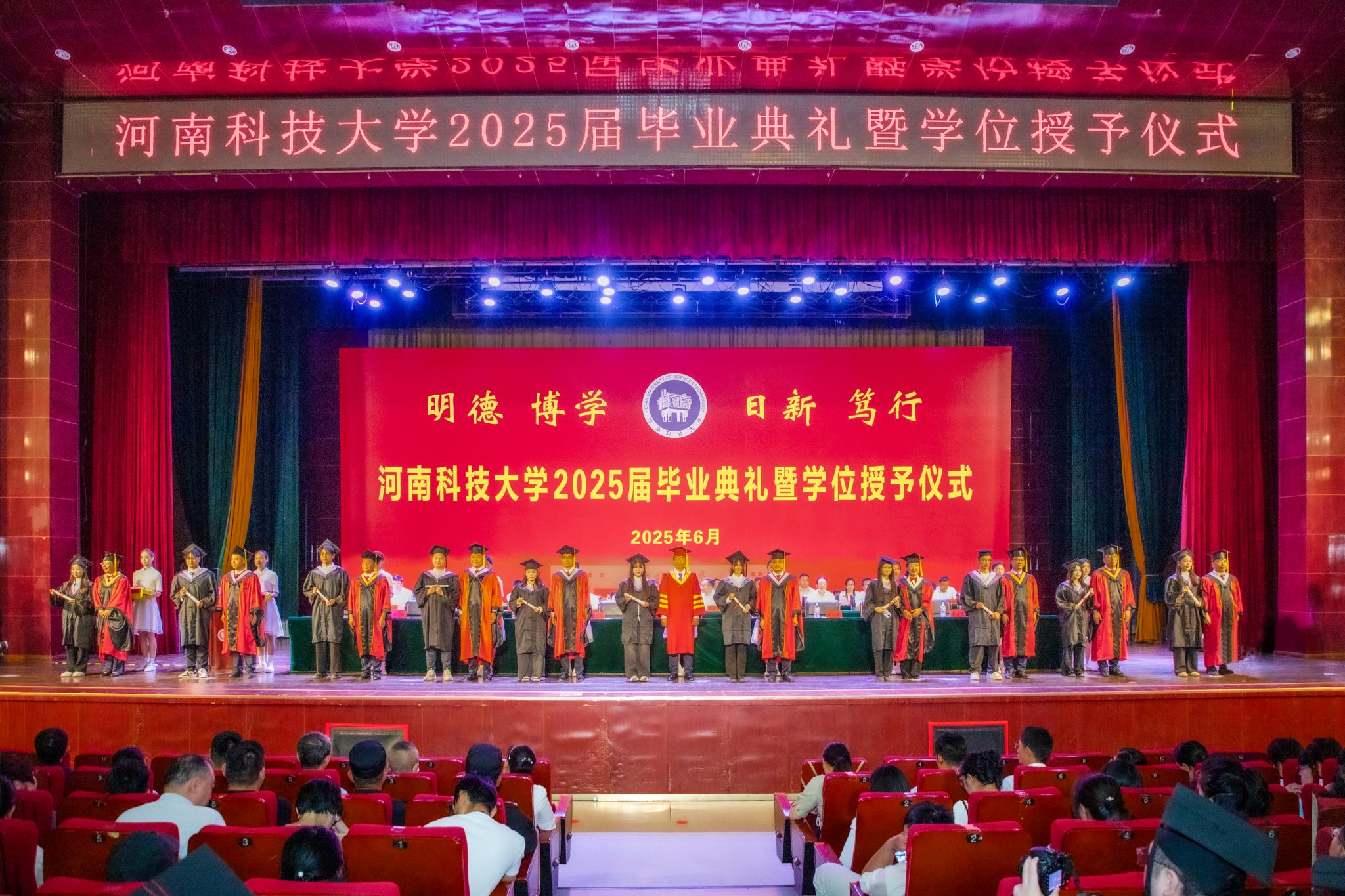 党委书记、校长王洪彬勉励2025届毕业生,要从服务国家战略需求中锚定发展方向,以“小我”之奋斗点燃“大我”之担当;要牢记习近平总书记在洛阳考察时的殷殷嘱托,在智能时代的“新赛道”上锤炼硬核本领;要时刻保持清醒的认知,既有“敢闯敢试”的锐气,更有“行稳致远”的定力,以赤子之心报效祖国,以实干担当为母校增光,以奋斗姿态成就更好的自己,让青春在时代浪潮中绽放光芒!
