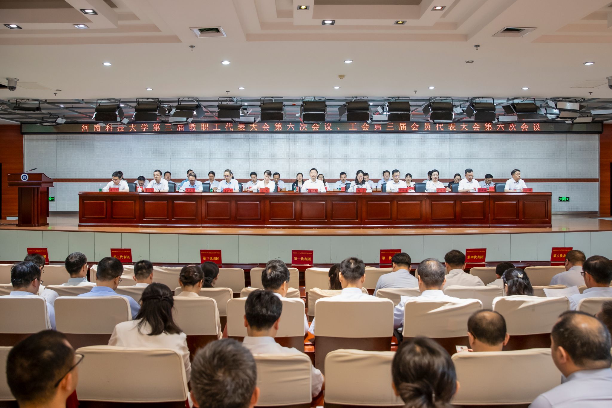校新闻中心讯 6月13日,我校第三届教职工代表大会第六次会议、工会第三届会员代表大会第六次会议隆重召开。全体校领导、正式代表、特邀代表及列席代表出席会议。