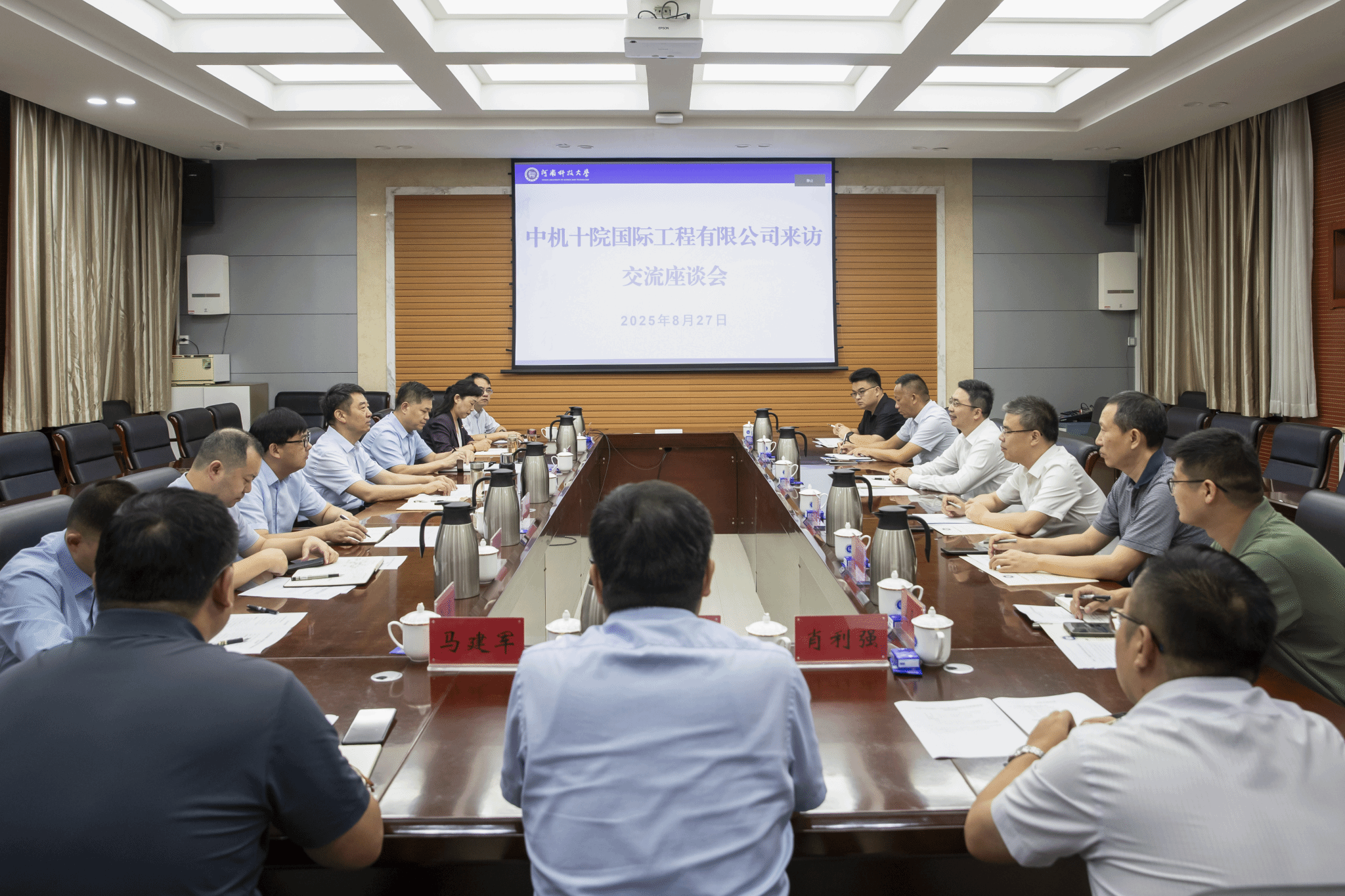 校新闻中心讯 8月27日,中机十院国际工程有限公司党委书记、董事长王辉一行到校访问交流。党委书记、校长王洪彬,副校长王学峰,中机十院国际工程有限公司党委副书记、总经理杜强出席座谈会。