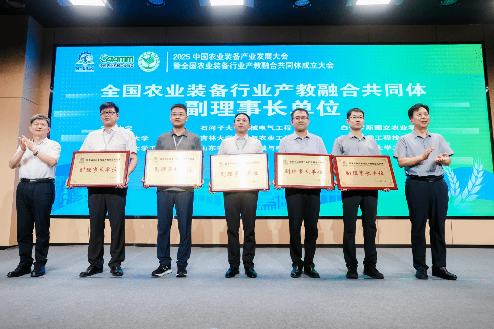 校新闻中心讯 8月28日至29日,2025中国农业装备产业发展大会暨全国农业装备行业产教融合共同体成立大会在山东泰安成功召开。会议期间,选举产生了共同体理事长、副理事长及理事单位,我校当选副理事长单位。