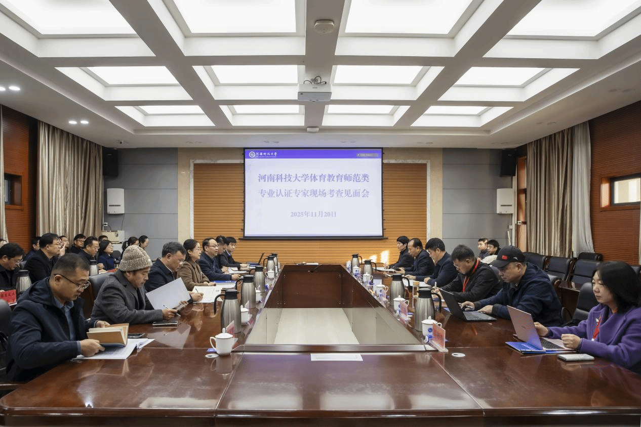 校新闻中心讯 11月19日至22日,受教育部教育质量评估中心委派,以罗林教授为组长的认证专家组一行莅临我校,对体育教育专业开展师范类专业第二级认证现场考查。河南省教育评估中心副主任张新民,省教育厅教师工作处副处长张会敏,校领导王洪彬、杨霞、吴庆涛、穆云超及相关职能部门负责人参加认证活动。