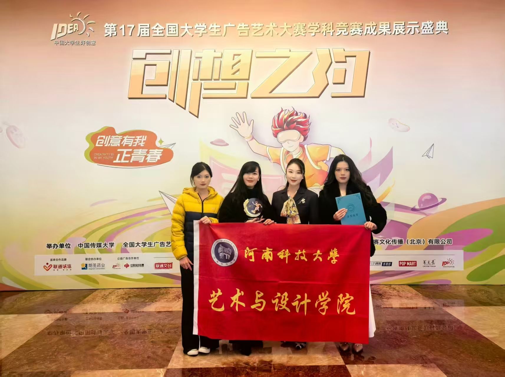 校新闻中心讯 12月6日至7日,第17届全国大学生广告艺术大赛学科竞赛成果展示盛典暨20周年华彩盛典在北京全国政协礼堂隆重举行。在本届大赛中,我校师生获得国家级奖项34项,其中国家一等奖1项、二等奖1项、三等奖5项、优秀奖27项,我校荣获“全国优秀院校”称号,艺术与设计学院教师朱丹君获“大广赛20周年杰出教师”荣誉称号。