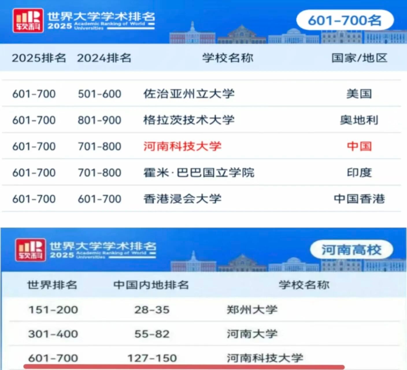 学校着力推动学科内涵式发展,学科生态持续优化,创新动能显著增强,综合实力与学术影响力取得显著进步。8月,软科“2025世界大学学术排名”发布,我校位列世界第657名、中国内地高校第139名,较2024年分别提升62位和4位,取得近五年最佳表现,稳居河南省上榜高校第三位。