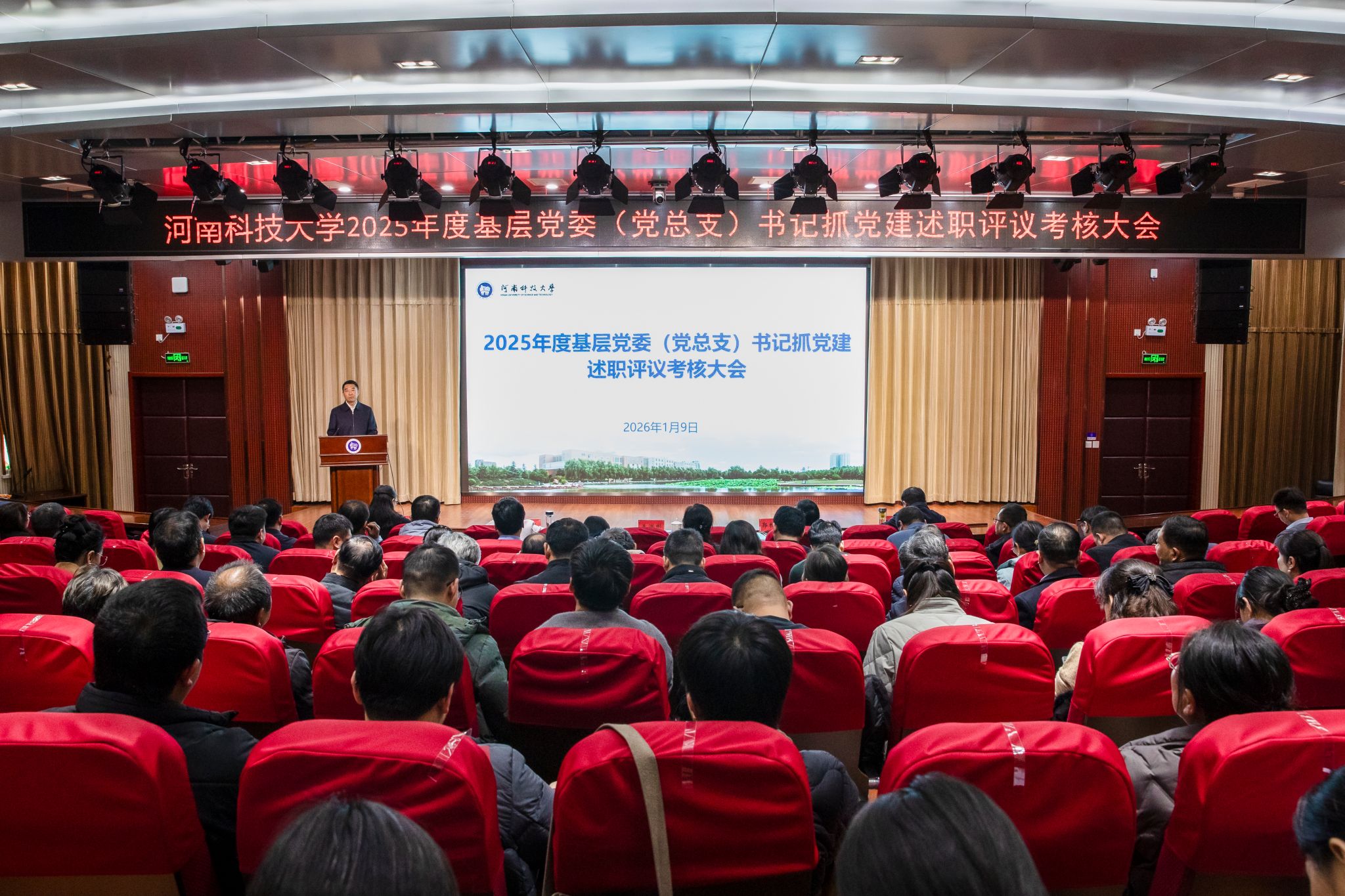 校新闻中心讯 1月9日,学校召开2025年度基层党委(党总支)书记抓党建工作述职评议考核大会。校领导王洪彬、海然、郭相春、侯帅出席会议。会议由党委副书记、工会主席杨霞主持。