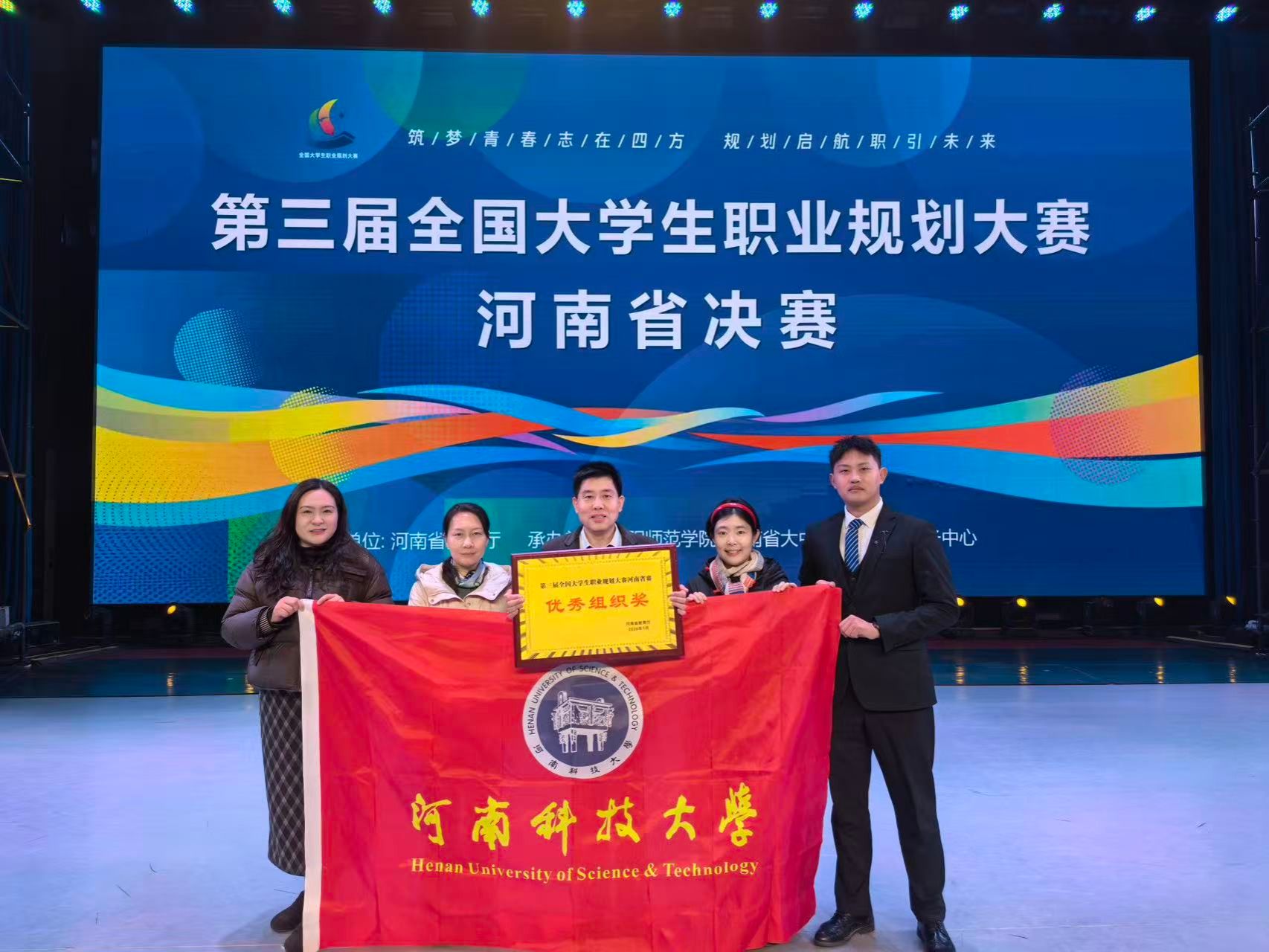 校新闻中心讯 近日,第三届全国大学生职业规划大赛河南省决赛圆满落幕。我校选手斩获金奖7项、银奖3项、铜奖2项,金奖数量及获奖总量均居全省高校首位,我校以第一位次荣获“优秀组织奖”。