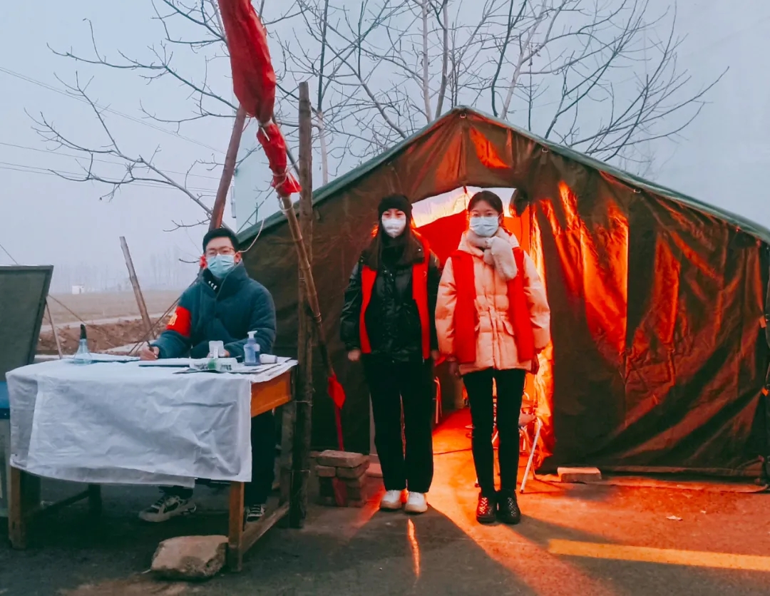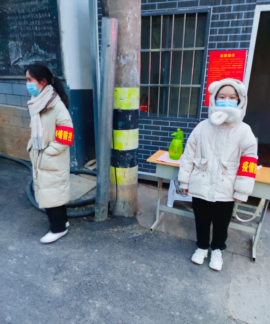 十二月底,家在洛阳市的张昭祥同学刚回到家,在了解到洛阳市新安县的疫情情况后,积极报名志愿者活动,参加汝阳县城关镇桃园社区的卡点防疫工作。她每天早上八点起床上岗,对来往的人员进行身份和行踪排查,提醒路人佩戴口罩。直到下午六点,张昭祥才顶着寒风,披着星光回到自己的家中。上岗的时间很长,天气也很冷,但她说:“看到孩子们放学回家路上的灿烂笑容,这一切都是值得的。”
