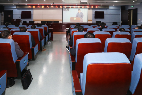 校新闻中心讯 1月23日上午,学校在开元校区召开党史学习教育总结会议,总结学校党史学习教育开展情况,对推进党史学习教育常态化长效化作出部署。省委党史学习教育第三巡回指导组组长、濮阳市人大常委会主任邵景良,副组长、省委党史研究室副主任李海民,指导组成员、省工业和信息化厅一级调研员简斌,濮阳市人大调研室综合科科长马德原到会指导。校领导王洪彬、孔留安、李漪、李友军、李全安、孟伟、魏世忠、张小安、杨霞出席会议。全体正处级领导干部、教师代表和辅导员代表参加会议。校长孔留安主持会议。