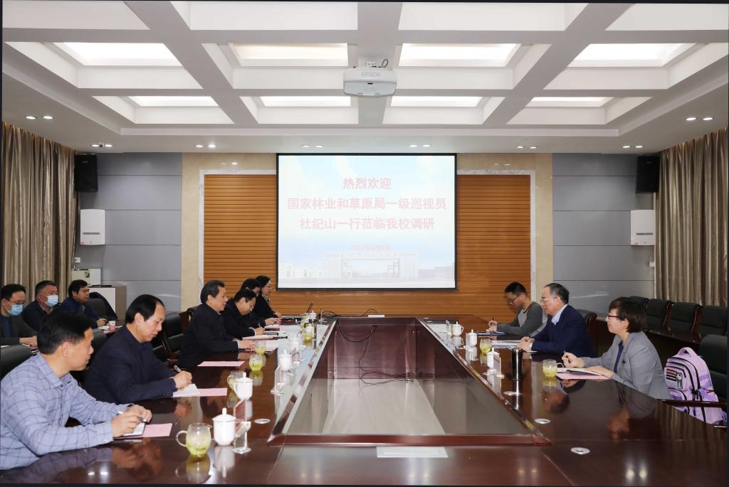 校新闻中心讯 近日,国家林业和草原局发改司一级巡视员杜纪山一行来我校考察调研。会议在博园第一会议室举行。校长孔留安、副校长李友军出席会议。科技处、农学院(牡丹学院)相关负责人和我校牡丹科研团队教师参加会议。会议由李友军主持。