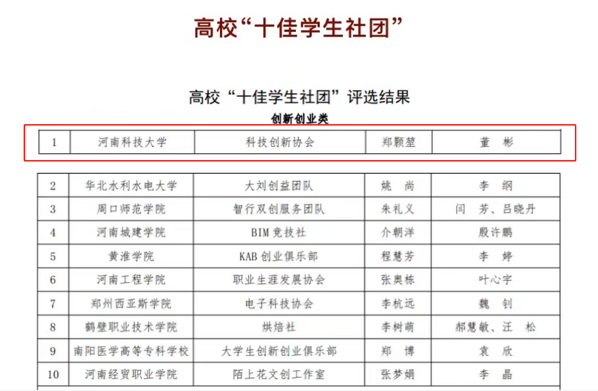 车辆与交通工程学院科技创新协会成立于2002年,协会坚持以党中央“创新驱动发展战略”为指导思想,以“提高科学素质,弘扬科学精神”为宗旨,以“活跃校园科技文化氛围,培养创新型人才”为根本目标,立足于校内校外各类创新创业大赛、科技竞赛、学科竞赛等,培养大学生的科学创新意识和动手实践能力。协会拥有专家、教授、博士等经验丰富的教师团队,完备的实验设备和创新实践基地。在全体科创人的共同努力下,经过19年的探索与成长,学生团队的科研项目共计1000余件,最终申报参赛作品总计500余件,参与学生达10000余人。近五年,协会获得国家级奖项34项,省部级奖项73项。2018年,选送《小康农民讲习所》项目参加第四届中国大学生“互联网+”创新创业大赛获得全国金奖,是自大赛举办以来河南省第一个金奖项目。