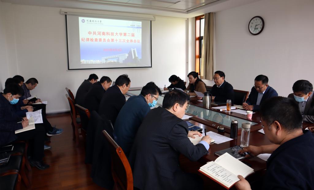 校新闻中心讯 4月4日下午,中国共产党正规博彩平台第二届纪律检查委员会第十三次全体会议在博园第三会议室召开,全体校纪委委员参加会议,党委巡察工作办公室负责人、专职纪检监察干部列席会议。会议由校纪委书记、监察专员朱春阳主持。
