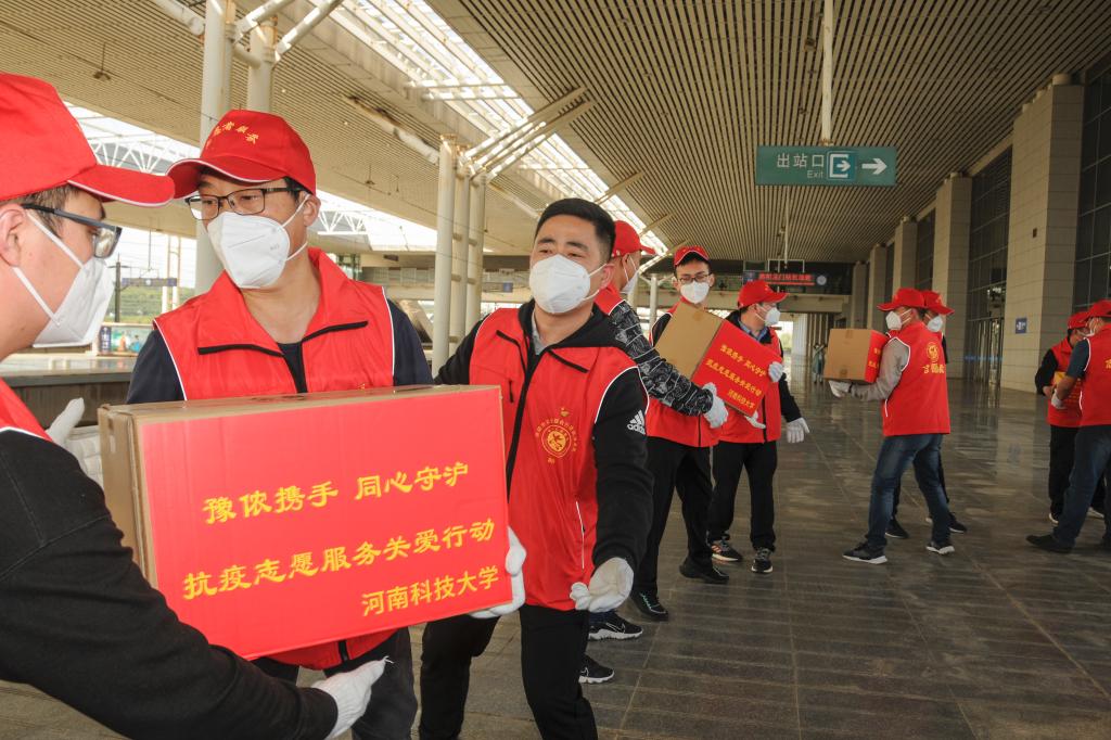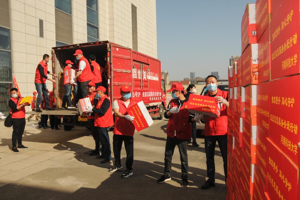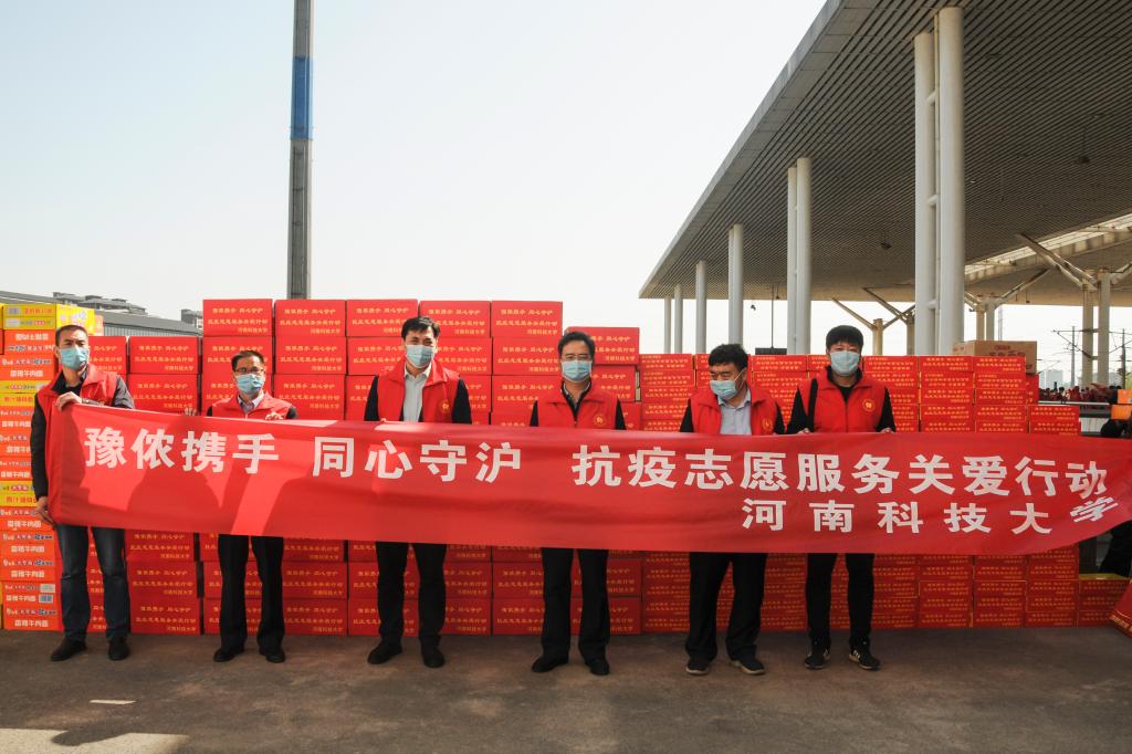 校新闻中心讯 “豫”侬携手,同心守“沪”。按照省文明办“豫沪携手 同心抗疫”志愿服务关爱行动统一安排部署,4月9日上午,我校捐赠的一批价值10万元生活物资顺利送达洛阳龙门站,通过搭乘G1918次高铁发往上海。校工会主席李会宗,党委办公室、党委宣传部、校长办公室和校工会相关负责同志参加活动。