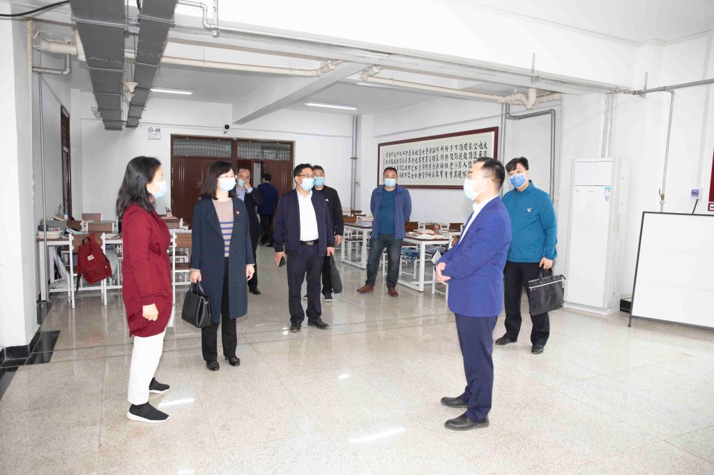 检查组一行实地查看了学校北大门、校医院、学生宿舍和餐厅等重点岗位和场所的疫情防控措施落实情况。