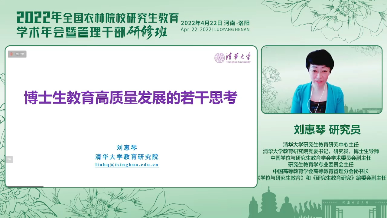 本次会议设置有大会报告和管理工作案例交流两大模块。李健强教授主持大会报告模块。张福锁院士、柏连阳院士和刘惠琴研究员分别以“学科创新-人才培养-社会服务三位一体服务重大发展需求——‘洱海战役’思考与实践”“农业科研单位与高校联合培养研究生的实践与思考”“博士生教育高质量发展的几点思考”为题,作了专题报告。