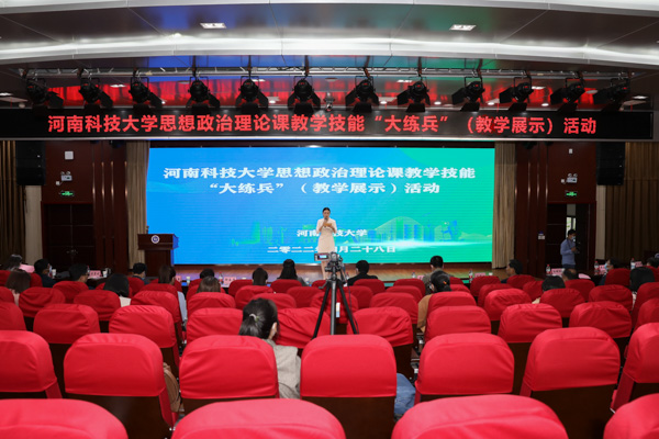 校新闻中心讯 为深入贯彻落实中共河南省委高校工委、河南省教育厅《关于开展全省学校思想政治理论课教学技能“大练兵、大比武、大展示”活动的实施意见》和全省本科高校“课堂教学质量提升专项行动”,以赛促教,锤炼教师教学技能,提升思政课堂教学质量,4月28日,我校思政课教学技能“大练兵”(教学展示)活动在医学教师发展中心举行。副校长杨霞出席活动并致辞。教务处、马克思主义学院负责人及教师代表参加教学观摩。活动邀请教育部师范专业认证专家、本科教学审核评估专家、洛阳师范学院党委副书记宋文献教授,洛阳师范学院马克思主义学院院长郭长华教授,洛阳理工学院马克思主义学院院长苗国强教授,正规博彩平台校教学督导组专家孙艳红教授等7位专家作为评委。