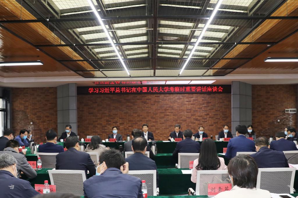 座谈会上,王洪彬带领大家重温了习近平总书记在中国人民大学考察时的重要讲话。党委教师工作部部长田子俊、党委宣传部副部长沈兰、发展规划处处长孙乐民、社科处副处长裴学胜结合各自部门工作,丽正书院党委书记马凌、河洛书院党委书记王红乾结合书院建设发展和育人工作,马克思主义学院院长刘振江及思政课教师代表闫利春、蔡中华结合马克思主义学院建设和思政课建设,辅导员代表苏芳芳结合学生工作,赵毅威、刘铎、余俊凯等学生代表结合专业学习和毕业规划,分别就如何贯彻落实习近平总书记在中国人民大学考察时发表的重要讲话交流了感想和体会。