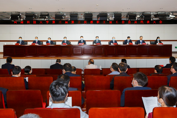 王洪彬强调,2022年恰逢学校建校70周年,学校进入了“双一流”大学创建的新阶段,更需要凝聚全体师生和广大校友在学校事业发展中的智慧和力量。希望大家紧密地团结在以习近平同志为核心的党中央周围,坚持以习近平新时代中国特色社会主义思想为指导,团结动员全校师生员工,不忘初心、牢记使命,全力以赴完成学校确定的各项目标任务,为推进“双一流”大学创建和学校事业高质量发展贡献智慧和力量,以优异成绩迎接党的二十大胜利召开。“滔滔黄河,巍巍嵩岳……”,最后,在振奋人心的校歌声中,第三届教职工代表大会暨工会会员代表大会第三次会议胜利闭幕。