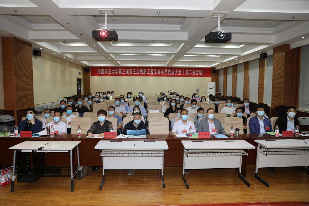校新闻中心讯 5月18日,学校召开第三届教职工代表大会暨工会会员代表大会第三次会议。会议采取“主会场+分会场”线上线下结合的方式召开。全体校领导出席会议,教职工代表以代表团为单位在指定会场参加会议。大会全体会议分别由副校长李友军、校纪委书记朱春阳主持。