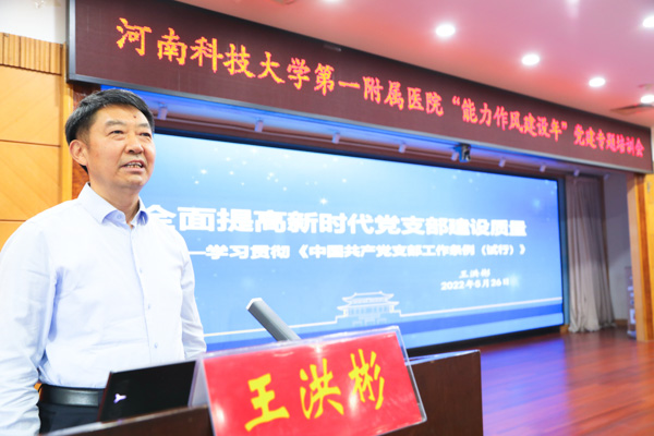 王洪彬以《全面提高新时代党支部建设质量——学习贯彻<中国共产党支部工作条例(试行)>》为题,围绕深入学习领会习近平总书记关于加强新时代党支部建设的重要指示精神、深刻把握新时代加强党支部建设的重大意义、全面准确把握《条例》的主要内容、切实抓好《条例》的贯彻落实四个方面作了深入细致的讲解。他表示,重视党支部、关心党支部、善抓党支部,是习近平总书记的一贯作风和鲜明品格。党的十八大以来,以习近平同志为核心的党中央着眼于推进伟大斗争、伟大工程、伟大事业、伟大梦想,深刻把握执政党加强自身建设的成功经验和时代要求,对新时代党支部建设提出一系列新思想新论断新要求,推动全党形成大抓基层、大抓支部的良好态势。