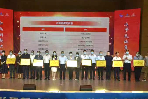 在2021年第七届中国国际“互联网+”大学生创新创业大赛省赛中,我校共有6421个项目团队参赛,参赛师生达37666人次,参赛人数位居全省第一,共有88个项目获奖,其中一等奖21项、二等奖34项、三等奖33项,推选数量和获奖数量位列全省第一,学校再次获得河南省“优秀组织奖”;国赛中,我校满额推荐高教主赛道和“青年红色筑梦之旅”赛道的参赛项目,其中3个项目入围全国总决赛现场赛,入围数量全省第一,最终荣获3项银奖、6项铜奖。