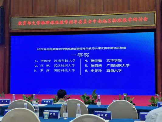 校新闻中心讯 6月17日至19日,2022年全国高等学校物理基础课程青年教师讲课比赛中南地区复赛暨2022年教育部大学物理课程教学指导委员会中南地区物理教学研讨会召开。我校物理工程学院青年教师李秋泽以省赛第一的成绩代表河南省参加此次赛事。在与中南地区六省19名老师的激烈角逐中,李秋泽凭借表现优异,再次以第一名的成绩取得了一等奖,并将代表中南地区参加全国比赛。同时,李秋泽还在随后举行的物理教学研讨会上进行了优秀选手教学风采展示。