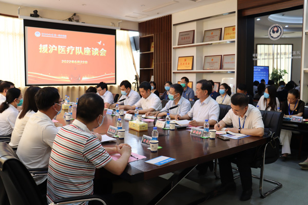 座谈会上,援沪医疗队队长、一附院院长高社干介绍了援沪医疗队的工作情况。援沪医疗队队员代表郝晓伟、史素玲、张咏梅、李道麟、姬金兰、李向梅、展可可、张高冲、任乐宁先后发言,讲述了援沪期间的难忘经历。