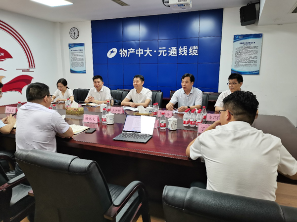 7月9日上午,王洪彬一行来到物产中大元通电缆有限公司,我校1998届校友、公司党总支书记、董事长杨兆文,2003届校友、公司党总支副书记、总经理屠渭江对王洪彬一行的到来表示热烈欢迎。杨兆文说,非常高兴母校领导来公司看望校友,这是对我们的鼓励与鞭策,感谢母校为公司输送70余名优秀校友在公司任职,他们素质高、能力强、勤奋踏实、务实肯干,很多已成为公司的业务骨干,走上领导岗位,为公司的发展建设作出了巨大贡献。屠渭江介绍了公司发展现状、取得的业绩、未来发展规划等情况。