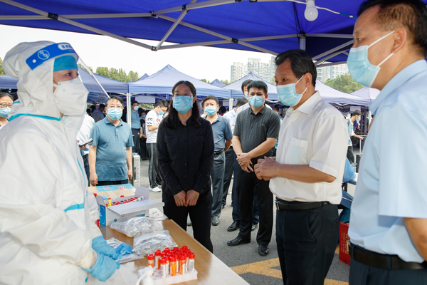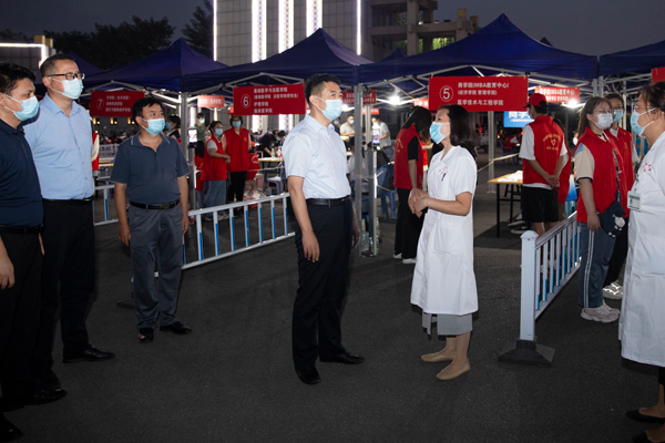 校党委书记王洪彬,校长孔留安等学校领导先后来到报到现场,看望慰问一线工作人员,了解疫情防控保障措施落实情况和学生返校报到情况,并对过程中的重点环节、风险点和防控点提出了指导意见。校领导对各单位返校前期的准备工作和辛勤付出给予充分肯定,并叮嘱大家要细化优化校园管理服务,让同学们尽快投入到校园学习生活当中。