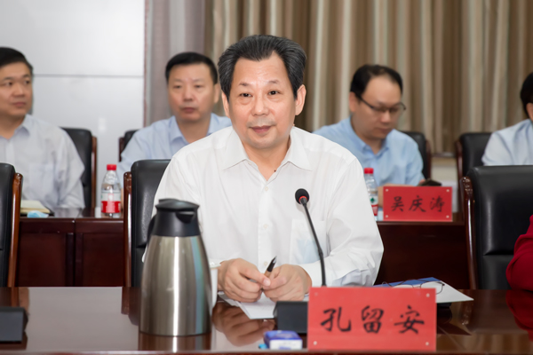 孔留安汇报了我校“双一流”创建工作整体情况及成效,并从建设责任如何落实、关键重点指标如何推进等方面阐述了工作思路和具体举措。
