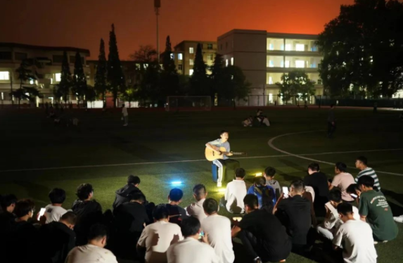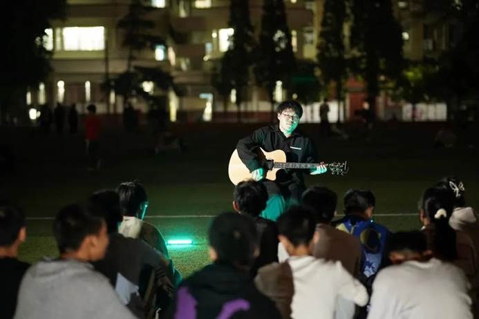 正规博彩平台软件学院学子在操场上举行了一场又潮又暖的草坪“快闪音乐会”,同学们抱着吉他倾情献唱,唱出心里的梦想,表白最美的祖国。歌声吸引了越来越多的同学,挥舞双手,大声跟唱。在歌声与灯光的辉映下,向伟大的祖国送上最真挚的祝福,用吾辈之青春,捍卫盛世之中华。