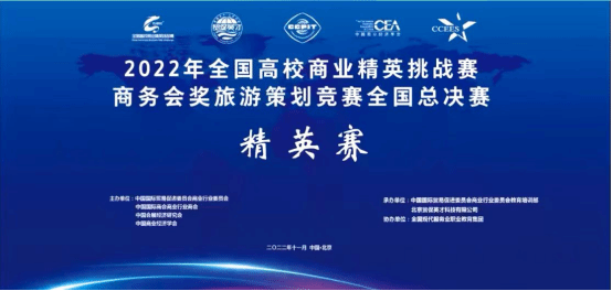 全国高校商业精英挑战赛商务会奖旅游策划竞赛全国总决赛由中国国际贸易促进委员会商业行业委员会、中国国际商会商业行业商会、中国会展经济研究会、中国商业经济学会共同主办,商业国际交流合作培训中心承办,全国现代服务业职业教育集团、《商展经济》杂志协办。商务会奖旅游是一种高端旅游模式,是旅游行业改变增长方式,调整产业结构,推动产业升级换代的重要方向。全国高校商业精英挑战赛商务会奖旅游策划竞赛自2014年起开始举办,受到了全国高校师生的广泛关注和好评。是针对全国高校大学生的多学科国家级竞赛,现已成为高校师生在旅游管理、酒店管理和会展管理领域高层次的交流和学习平台,致力于提升相关专业大学生的实践能力和创新能力。