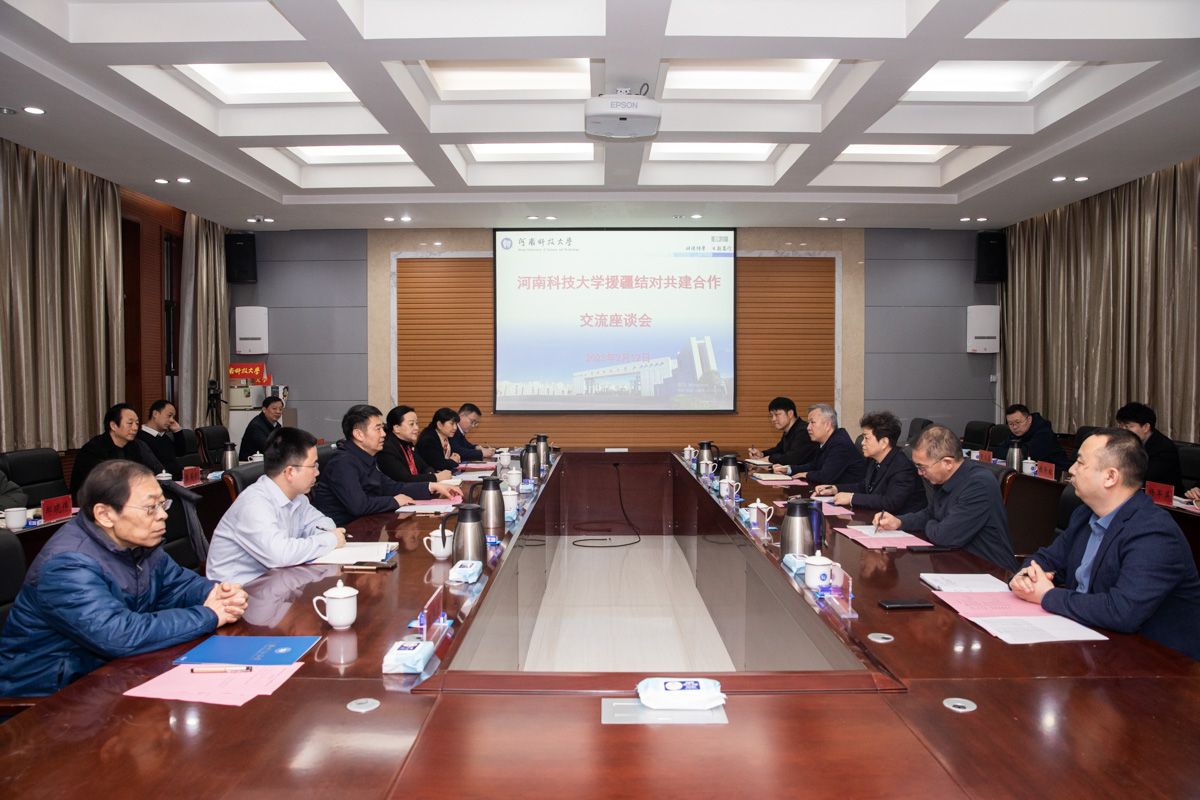 校新闻中心讯 2月12日下午,新疆生产建设兵团第十三师副师长、卫生健康委党委书记、主任谢昕带队,十三师红星医院党委书记、院长安占天,教育局党组成员、副局长(援疆)、河南省教育厅处长闫治国,卫生健康委党委委员、副主任(援疆)、河南省卫生健康委监察专员王涛等一行10人到我校对接援疆结对共建合作工作。学校在博园第一会议室举行会议。校党委书记王洪彬出席会议,医学科学学部主任雷方及医学科学学部、基础医学与法医学院、第一附属医院负责人参加会议。会议由党政办公室副主任郭彦伟主持。