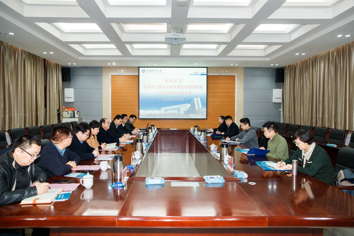 校新闻中心讯 2月28日,河南省政协委员、香港利记集团业务发展总经理郑家豪,集团联席生产总监黄志华,河南省委统战部港澳台统战工作处四级调研员姚伟峰,洛阳市委统战部副部长闫洁一行5人来我校交流访问、洽谈合作,副校长李全安会见郑家豪总经理一行并座谈交流。
