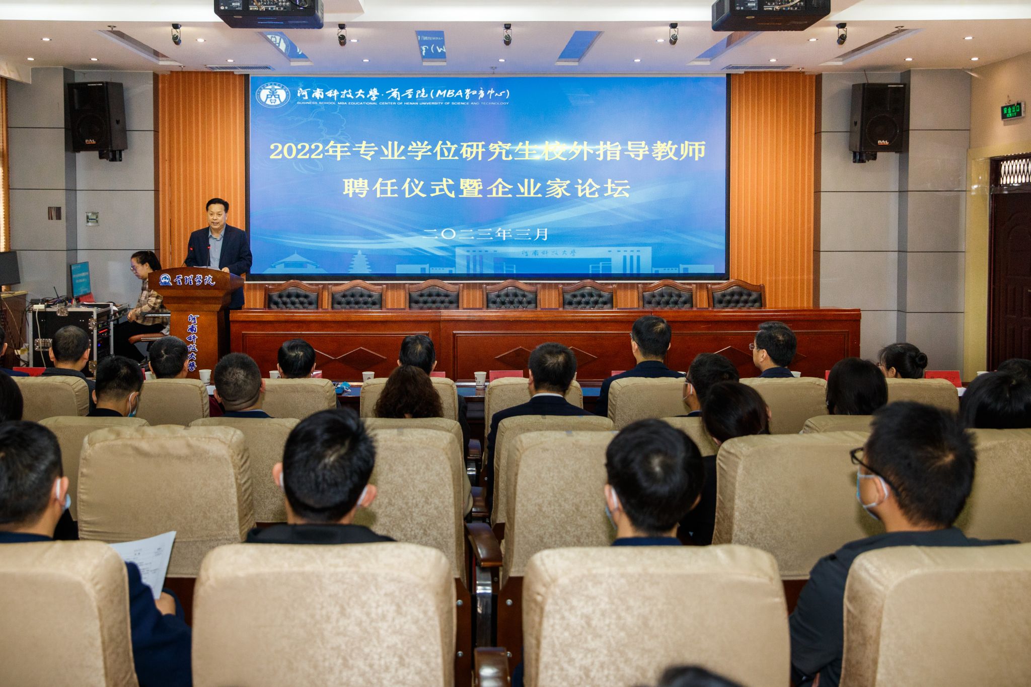 校新闻中心讯 3月11日上午,学校商学院在文1-S105举办了专业学位研究生校外指导教师聘任仪式暨企业家论坛,校党委副书记孟伟出席会议,学院师生代表及校外指导教师参加会议,会议由商学院副院长王凤科主持。