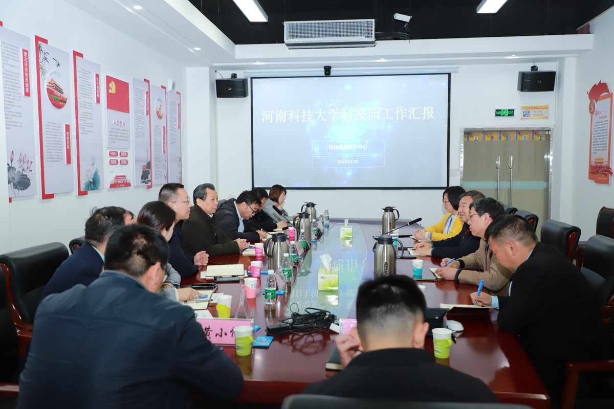 校新闻中心讯 3月22日上午,校长孔留安一行前往我校大学科技园考察调研。洛阳经济开发区管委会副主任孙亚平,洛龙区人民政府、洛阳经济开发区管委会、学校相关职能部门负责人及炎黄科技园负责人等参加考察调研。