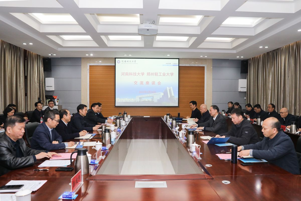 校新闻中心讯 3月24日下午,郑州轻工业大学校长魏世忠,党委副书记杨新宇,纪委书记张晓根,副校长王延峰、张成一行来校访问交流。学校在博园第一会议室召开座谈会。校党委书记王洪彬,党委副书记孟伟,副校长李全安,校纪委书记朱春阳,副校长庞新厂出席座谈会。座谈会由孟伟主持。