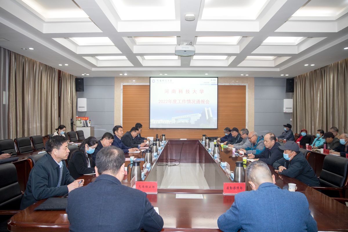 王洪彬通报学校工作情况。他从省委巡视、文明校园建设、“双一流”大学创建、全面深化改革、七十周年校庆、开放办学、疫情防控等七个方面向老同志们通报了学校2022年度工作开展情况和取得的重要成绩。他指出,2022年,学校党委坚持以习近平新时代中国特色社会主义思想为指导,贯彻落实党中央关于高等教育工作的决策部署和省委要求,聚焦新时代党的教育方针,全面贯彻落实“立德树人”根本任务,高质量完成了省委巡视工作,获批省级文明校园(标兵)单位,在材料科学与工程和机械工程学科“双一流”创建、高端科研平台培育、河南省龙门实验室建设和全国重点实验室共建工作等方面取得了新突破,在持续推进全面深化改革、加大中外合作办学力度、统筹推进疫情防控工作等方面取得了显著成效。2023年,学校将围绕“‘1945’工作部署”,从坚持党的全面领导、全面落实立德树人根本任务、深入实施学科提升工程、大力加强师资队伍建设、持续增强科技创新能力、扎实推进治理体系和治理能力现代化、深化提升文化传承创新、不断扩大学校社会影响力、优化提高服务保障能力等九个方面,全面推进学校各项事业再上新台阶。