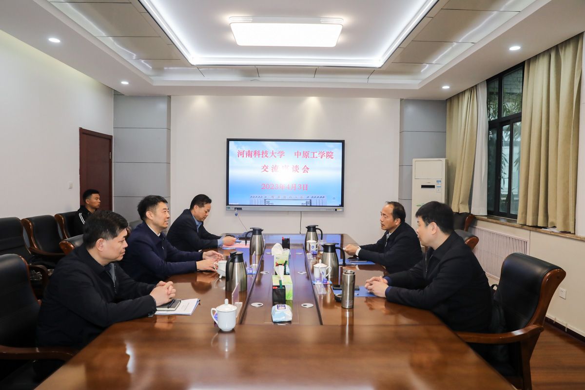 校新闻中心讯 4月3日上午,中原工学院党委书记贾少鑫、副书记邹松涛一行来校访问交流。学校在博园二楼常委会议室召开座谈会。校党委书记王洪彬、副书记孟伟出席座谈会。党政办公室、党委组织部负责人参加会议。