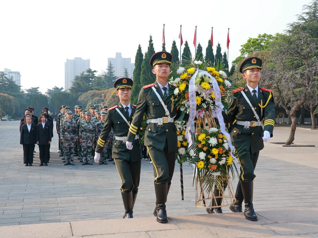 在庄严肃穆的洛阳烈士陵园内,我校学子在纪念碑前沉痛悼念革命先烈、鞠躬敬献鲜花。