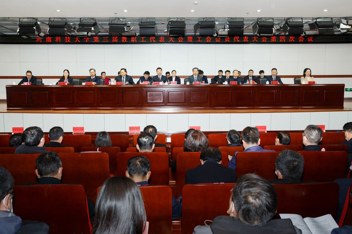 校新闻中心讯 4月6日上午,学校召开第三届教职工代表大会暨工会会员代表大会第四次会议。全体校领导出席会议,“双代会”代表参加会议,学校老领导、驻校省市人大代表、政协委员,民主党派基层组织负责人等列席会议。全体会议由校党委副书记孟伟主持。