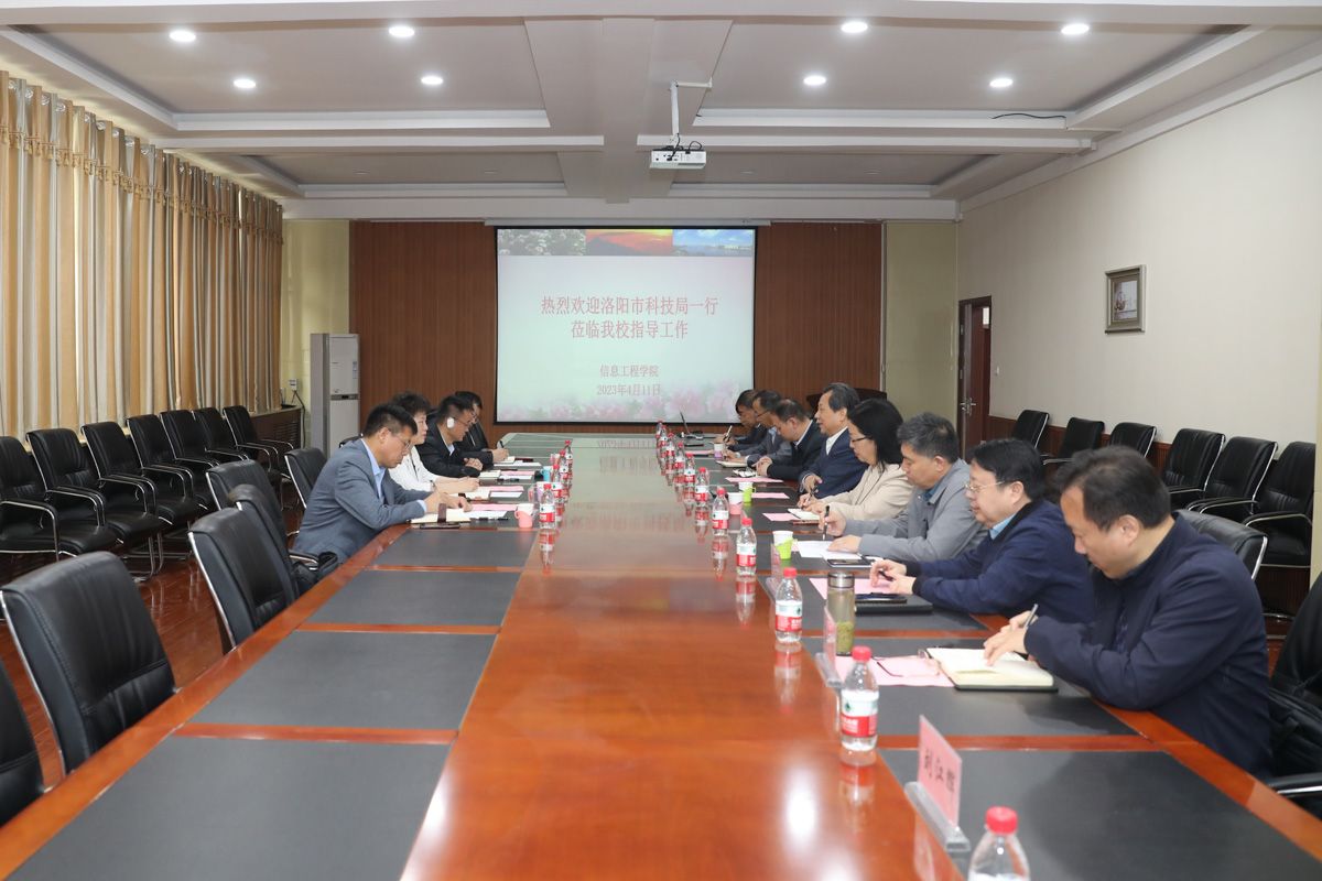 校新闻中心讯 4月11日上午,洛阳市科技局党组书记、局长叶惠玲一行来校调研人工智能、科技创新、创新创业以及成果转化等情况。会议在信息工程学院308会议室举行。校领导孔留安、侯小改出席会议,科技处、招生就业办公室、科技成果转化中心、信息工程学院、软件学院等单位负责人参加了会议。会议由副校长侯小改主持。